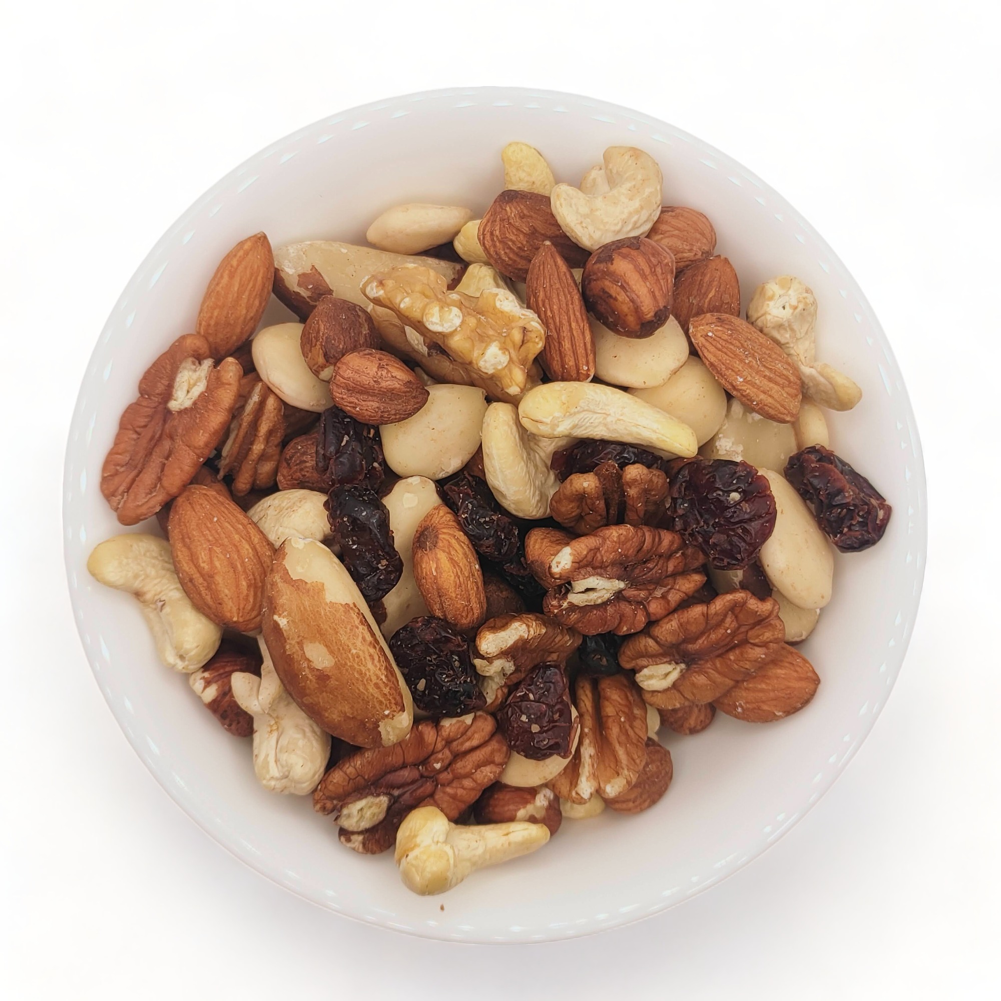 Una mezcla de almendras, anacardos, arándanos, avellanas y nueces es beneficiosa para la salud cardiovascular, ya que ayuda a reducir el colesterol LDL (malo), la presión arterial y el riesgo de coágulos sanguíneos. También proporciona antioxidantes, fibra, vitaminas (como E, B y C) y minerales (como magnesio), lo que contribuye a un mejor rendimiento cerebral y a fortalecer el sistema inmunológico. Además, puede mejorar la salud ósea y digestiva y ayudar a mantener estables los niveles de azúcar en sangre.